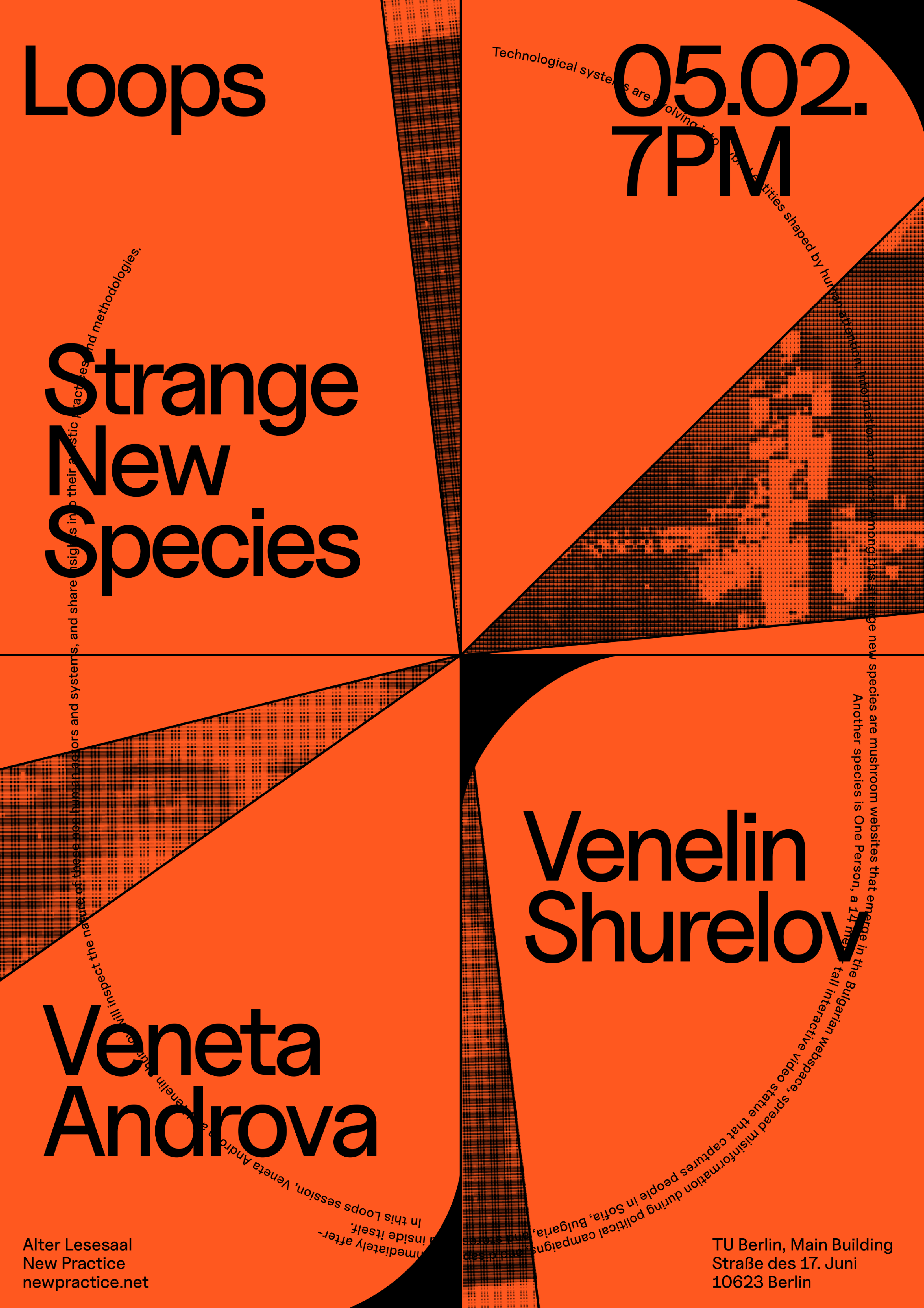 New Practice in Art and Technology is a research platform fostering a new post-disciplinary practice in light of technological and societal transformations. It engages with emerging cultural practices from an inter- and transdisciplinary perspective, bringing together positions from art, science, technology and theory. It emerges from the MA Design & Computation between the University of the Arts and the Technical University Berlin.